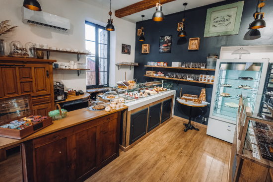 Nous avons deux boutiques, à Forcalquier et à Manosque, où vous pouvez venir déguster nos créations sur place ou les emporter pour les partager avec vos proches. Et pour votre commodité, nous proposons également une commande en ligne pour que vous puissiez savourer nos pâtisseries d'exception chez vous.
